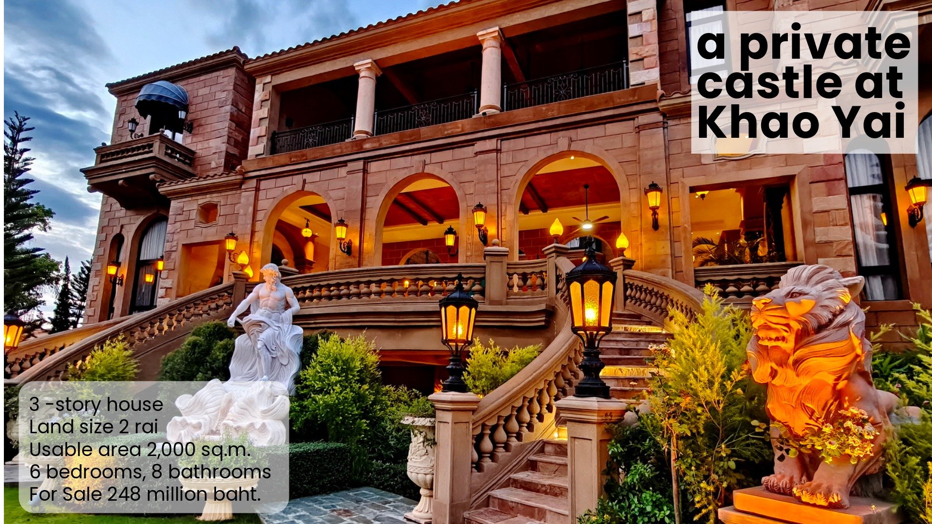 Description: Private Castle Khao Yai Land size 2 raiUsable area 2,000 sq.m.for sale 250 mb.